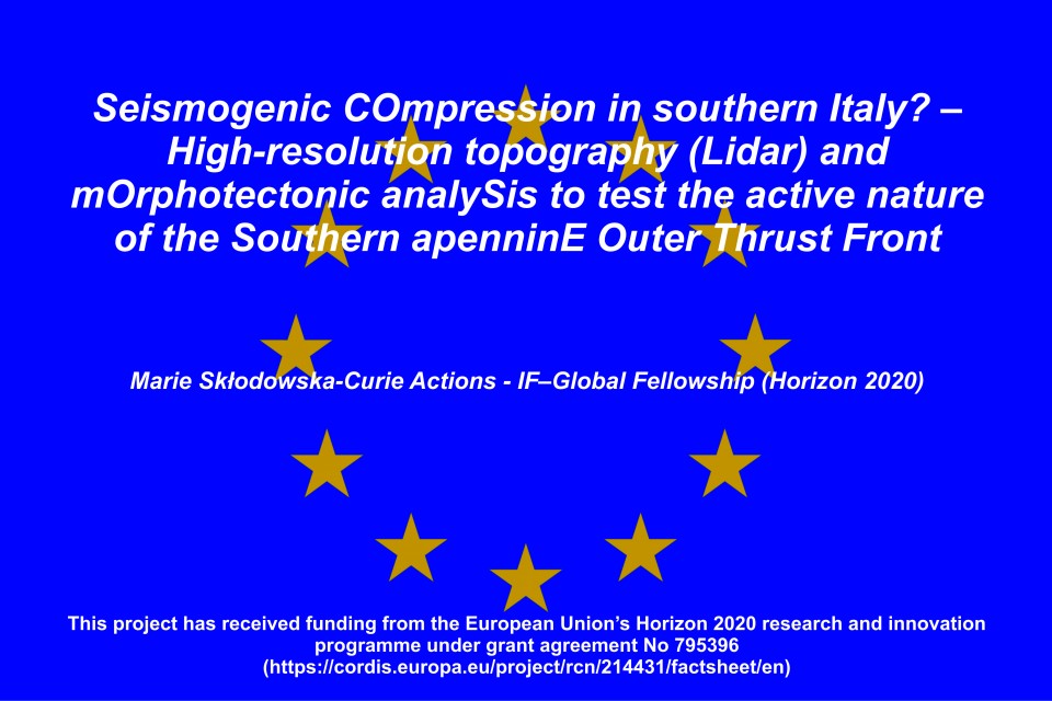 This achievement is allowing her, since October 2018, to carry on a research project called ‘COLOSSEO’ (Seismogenic COmpression in southern Italy? – High-resolution topography (Lidar) and mOrphotectonic analySis to test the active nature of the Southern ApenninE Outer Thrust Front, https://cordis.europa.eu/project/rcn/214431_en.html) as Principal Investigator, and by means a training-through-research program. The fellowship expects a 2-year outgoing phase in the US (hosted by a Partner Organization) and a mandatory 1-year return phase to Europe, in an Institution representing the Beneficiary of the Project (the DiSPUTer at Ud’A, in this case).
